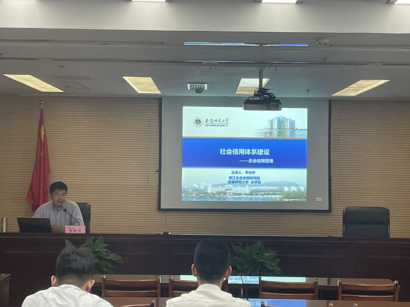為積極配合市委、市政府全面推進蕪湖市社會信用體系建設,提高政務誠信建設水平,不斷優(yōu)化營商環(huán)境,提升人民群眾和經(jīng)營主體對信用的獲得感,并進一步提高公司全體成員守信用信意識,我公司于5月21日下午舉辦“社會信用體系建設-企業(yè)信用管理”專題活動。活動特邀安徽師范大學法學院副院長李光宇教授為大家做信用體系建設專題講座。