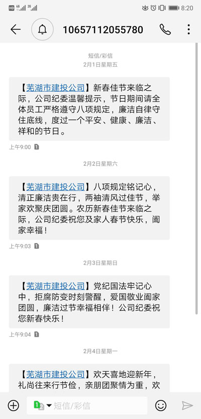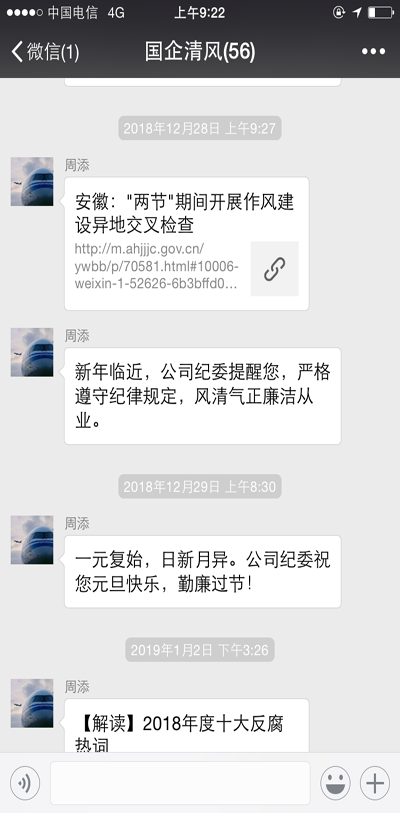 ▲通過微信、短信平臺(tái)發(fā)送元旦春節(jié)廉政短信,送出新年祝福的同時(shí)也送出了廉政提醒