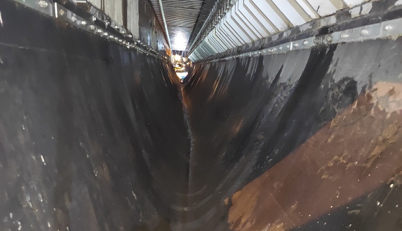 蕪湖長(zhǎng)江三橋主橋0#、5#墩處采用最大伸縮量為1200mm的梳齒形伸縮縫,齒間距約50mm,通過橡膠止水帶收集雨水后排至兩側(cè)雨水斗進(jìn)入雨水系統(tǒng)。自三橋通車以來,車輪及雨水裹挾泥沙由梳齒間隙進(jìn)入伸縮縫,止水帶內(nèi)存有不少泥沙和雜物。隨著時(shí)間的推移,止水帶內(nèi)積沙積泥載荷增大,將會(huì)對(duì)正下方高鐵運(yùn)行產(chǎn)生威脅。為及時(shí)消除安全隱患,大橋公司路產(chǎn)安全部養(yǎng)護(hù)人員組織外協(xié)單位多次前往現(xiàn)場(chǎng)確定清理方案及安全防護(hù)措施,并在公司領(lǐng)導(dǎo)帶領(lǐng)下及時(shí)對(duì)接鐵路蕪湖工務(wù)段,申請(qǐng)高鐵運(yùn)行天窗期開展專門清理工作。