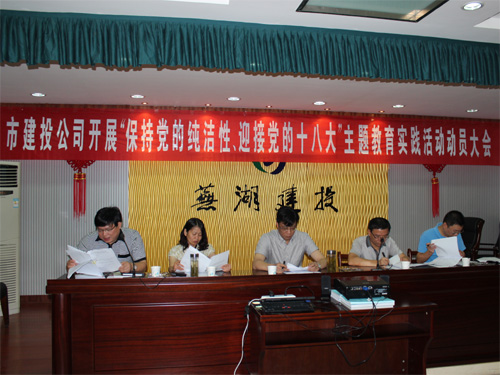 根據(jù)市委統(tǒng)一部署,公司于7月5日召開“保持黨的純潔性、迎接黨的十八大”主題教育實踐活動動員大會,公司全體黨員參加了會議。會議由公司副總經(jīng)理朱毅主持,公司紀檢組長汪學(xué)德向全體黨員傳達了市委相關(guān)文件精神,公司副總經(jīng)理方曉向全體黨員通報了公司主題教育實踐活動實施方案,公司副總經(jīng)理湯高繼帶領(lǐng)全體黨員學(xué)習(xí)了胡錦濤總書記在慶祝建黨九十周年上的講話、在十七屆中央紀委第七次全會上的講話及張寶順在省第九次黨代會上的工作報告等資料。全體黨員觀看了專題電教片《永葆黨的純潔性》等。