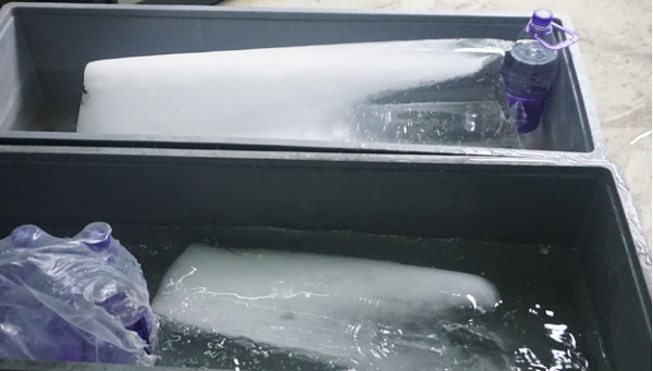 為車間送“清涼”:公司黨支部、安委會協(xié)同工會每天在生產(chǎn)車間不同區(qū)域放置冰塊以降低溫度,為一線員工送去絲絲清涼。